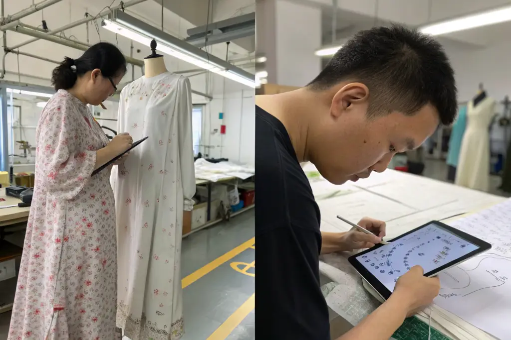 סגירת הפער בין הסטודיו בניו יורק לבין המפעל בסין היא המשימה הכי קשה. שמעתי אלפי פעמים את הטענה: "הדגימה נראתה מושלם, אבל ההזמנה הגיעה שונה". למה? כי מעצב חושב כמו אמן, ומפעל חושב כמו מהנדס. התרבות, השפה, ואפילו תפיסת הזמן שונות. מעצב רוצה דרמה, מפעל רוצה יעילות. כשמעצב נותן מפרט לא מדויק, המפעל "מפרש". וכשהמפעל מפרש, הוא בדרך כלל יבחר בדרך הקלה והזולה, לא בדרך המתוחכמת. כדי לעצב בגד מסחרי מושך, אתה חייב להבין איך להעביר את הרגש שלך דרך כלים הנדסיים.
