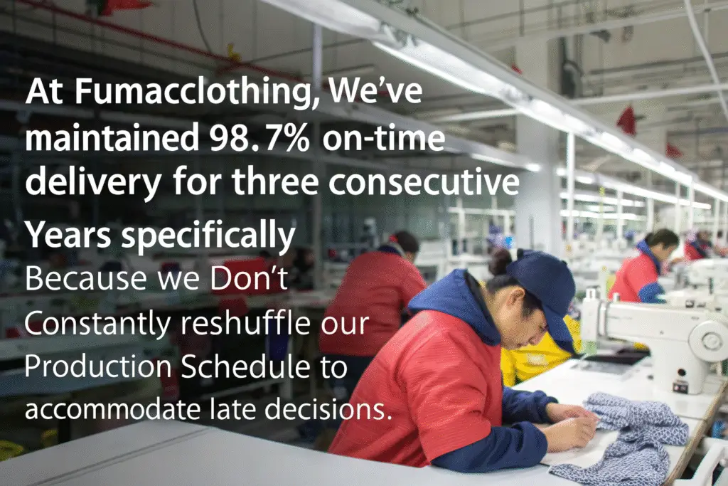 The benefits include guaranteed production dates, consistent quality through managed workload, transparent planning, and protection from other clients' emergencies. At Fumaoclothing, we've maintained 98.7% on-time delivery for three consecutive years specifically because we don't constantly reshuffle our production schedule to accommodate late decisions. A Seattle-based activewear brand that embraced our scheduling system reduced their production-related stress by approximately 70% simply because they could trust their confirmed dates wouldn't be stolen by another brand's crisis.