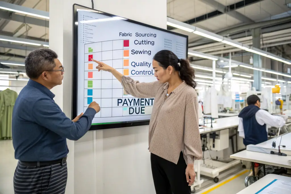 This approach directly addresses the core financial pain point: material cost. The deposit should be large enough to cover the majority of fabric and trim expenses. This ensures the factory is not financing the buyer's project with its own working capital. The balance payment then covers labor, overhead, and profit, and is triggered by an objective event.
