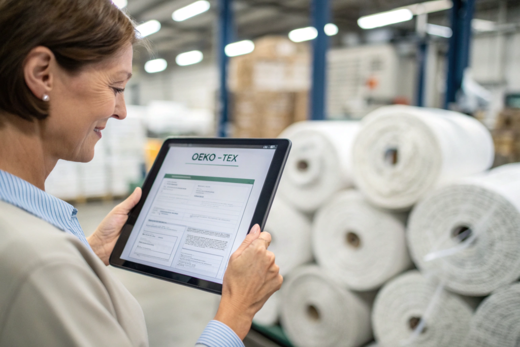 First, request the valid OEKO-TEX STANDARD 100 certificate for the exact fabric article you are purchasing. Verify the certificate number in the official OEKO-TEX database. Second, ask for supporting documentation on the recycled content. This typically includes a Supplier’s Declaration of Conformity (SDoC) specifying the percentage of post-consumer or post-industrial recycled content. Reputable manufacturers will provide this readily.