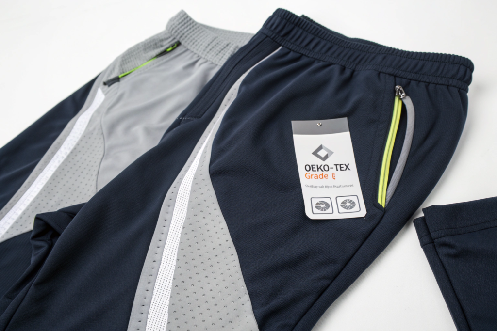OEKO-TEX Grade 1 certification supports the performance promise of your sports pants by ensuring that the chemicals enabling stretch, moisture-wicking, or wrinkle resistance are safe and stable, leading to better durability, odor control, and overall wearer comfort.