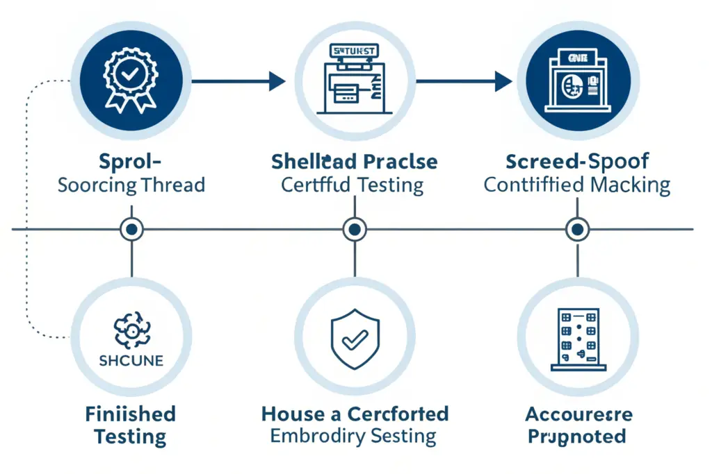 The solution is proactive supply chain management. You need a manufacturer that treats embroidery not as a separate, outsourced decoration step, but as an integral part of the certified production system. Our process for a major Arizona golf resort involves a four-step verification.