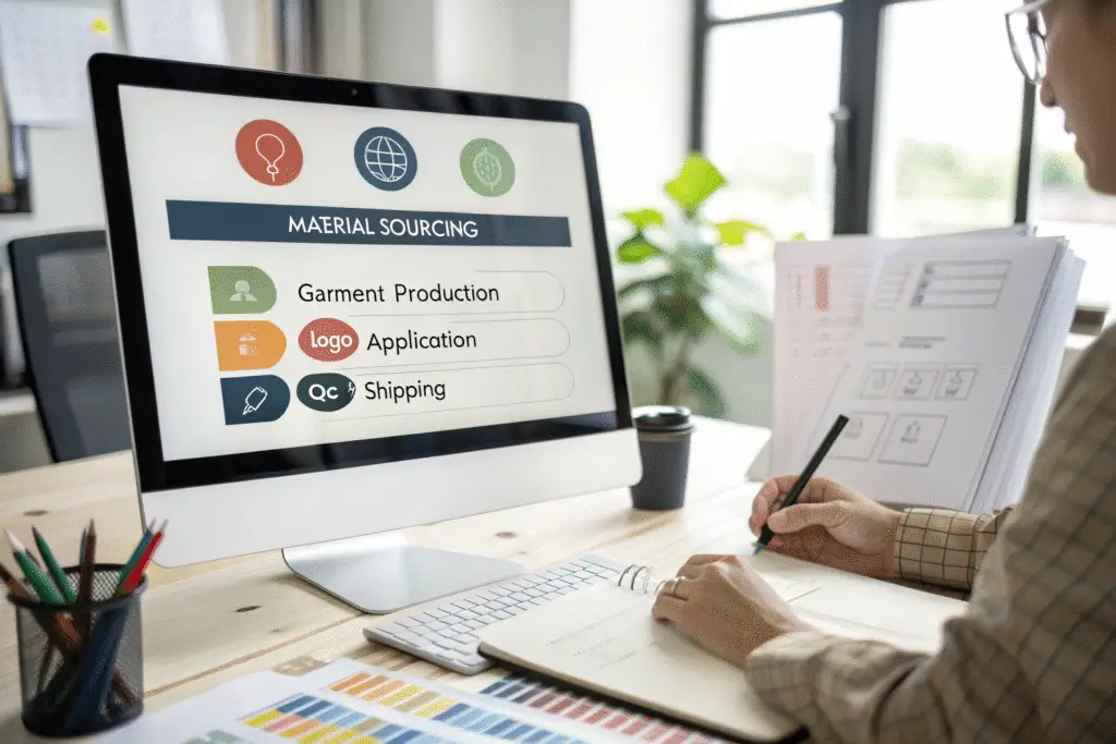 Material Sourcing & Prep 7-10 days Sourcing fabric, trims, and preparing the logo screens/DTG file.