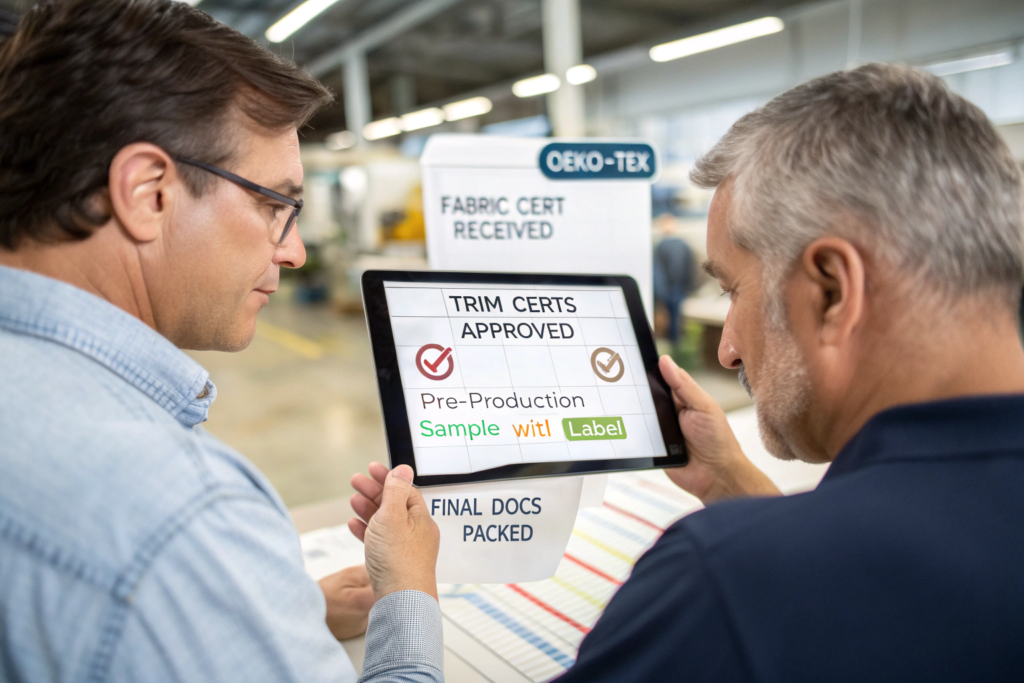 The certification process itself introduces checkpoints. For instance, if using pre-certified fabric, the milestone is "Provide batch-specific fabric certificate." If certifying a final garment, the milestone is "Receive and approve final product test report." These are concrete deliverables that trigger the next phase of work and payment. This prevents the common scenario where a brand assumes safety is being handled, only to discover at shipment that no testing was done.