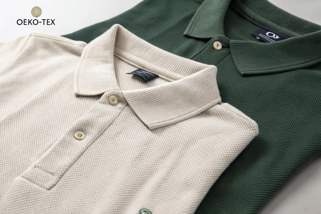 To source OEKO-TEX certified vintage-look fabrics, you must work with mills that either offer pre-certified base fabrics or are willing to undergo the certification process for custom developments. Focus on natural fibers like organic cotton or wool, and explore modern brushed or garment-washed techniques that achieve the desired look without harmful chemicals. We maintain a curated list of trusted fabric mills that specialize in certified materials with a classic aesthetic. This allows us to offer clients options like a OEKO-TEX certified pique cotton that mimics the weight and texture of traditional golf polos from the 1960s.