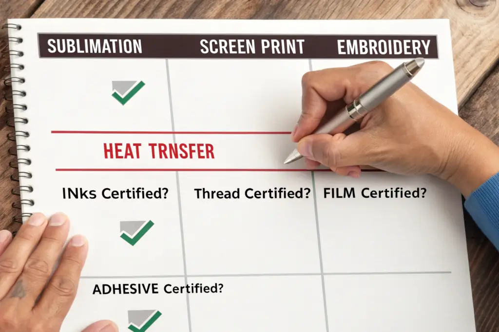 Complex logos are fine, but they increase the verification load. A four-color print requires that all four ink stations use certified inks. You must obtain certificates for each color family or a comprehensive certificate covering the entire ink system used by your printer. Planning and communication with your decorator are crucial.