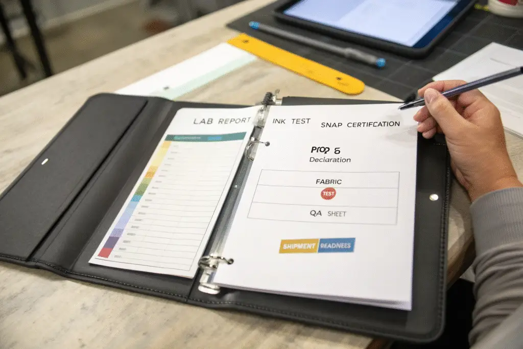 Use a naming format like PO12345_FabricTest_SGS.pdf for traceability. A well-organized digital folder has saved many of our clients from full customs seizures.