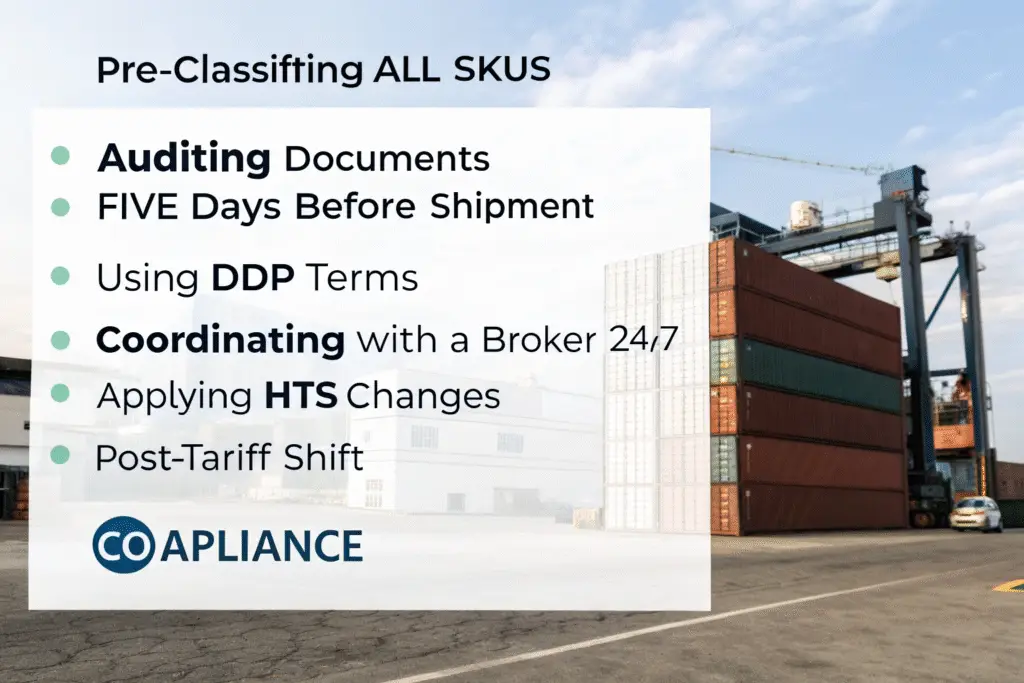 • Don’t guess HTS codes—especially for blends (e.g., 60% cotton/40% poly vs. 40/60 matters!)