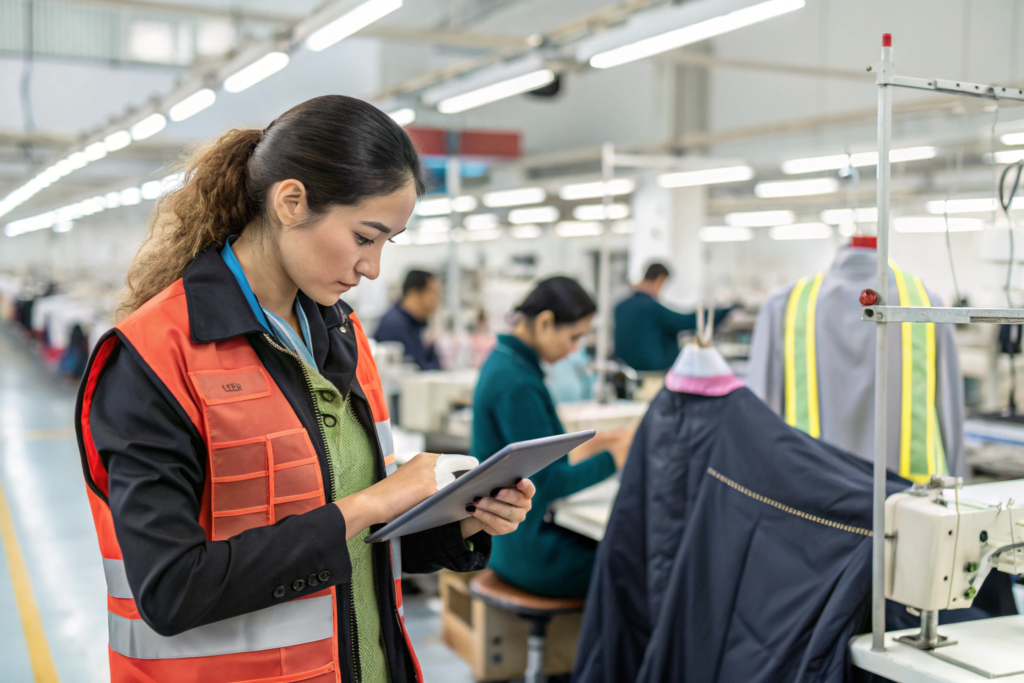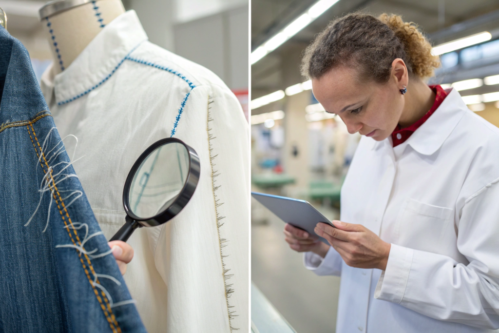 | 2. Line Checking (IPQC) | Continuous, every 1-2 hours on each production line. | Specific operations (e.g., pocket setting, collar attachment). | Uneven seams, stitch flaws, component misplacement. |