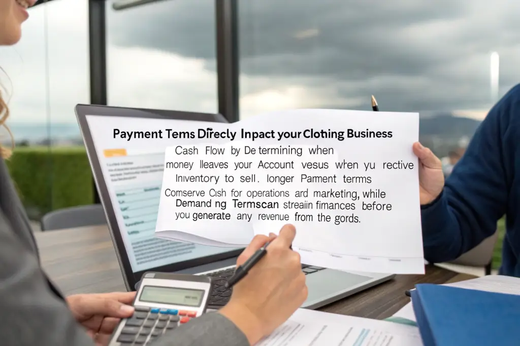 Payment terms directly impact your clothing business cash flow by determining when money leaves your account versus when you receive inventory to sell. Longer payment terms conserve cash for operations and marketing, while demanding terms can strain finances before you generate any revenue from the goods.