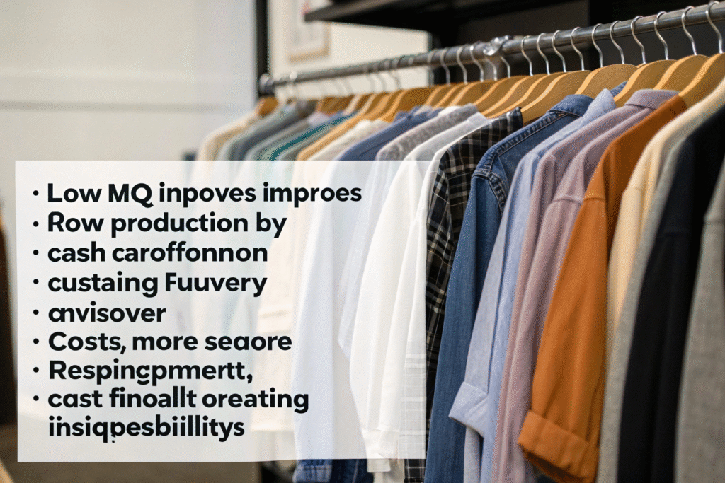 Low MOQ reduces financial risk by limiting upfront investment, decreasing storage costs, minimizing dead inventory exposure, and preserving working capital for marketing and operations. This financial protection is crucial during the vulnerable early stages of a fashion business.