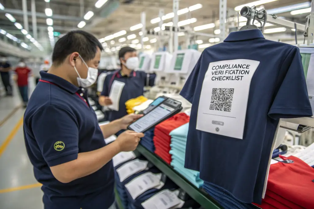 This passport moves with the material from warehouse to cutting, to sewing, to finishing. No passport, no production. This provides a paper trail that any auditor—or client like you—can follow.