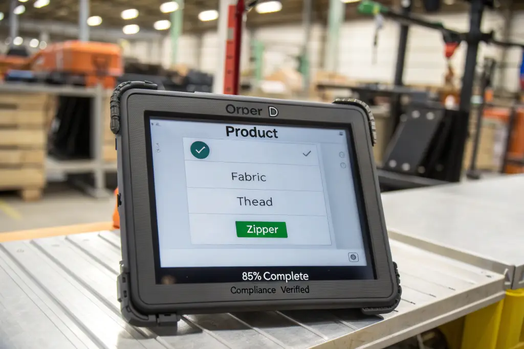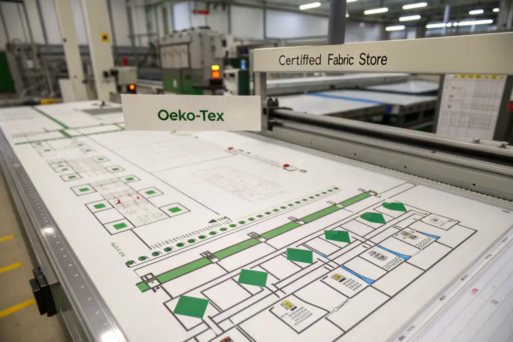 Digital traceability powers compliance by giving every component a digital twin. From the moment certified fabric enters our warehouse, it is scanned into our ERP/MES system, linked to its OEKO-TEX certificate, and assigned to a specific production order and line. As it moves through cutting, sewing, and packing, each transfer is logged by barcode scan, creating an immutable audit trail from certificate to carton.