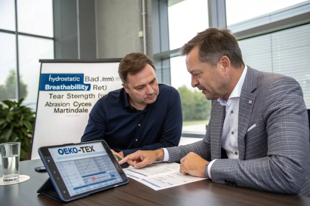 First, specify both performance and certification in your tech pack. Don’t just write "OEKO-TEX certified fabric." Specify: "Fabric must be OEKO-TEX STANDARD 100 certified (Class II or III) and meet the following performance criteria: Hydrostatic Head ≥ 20,000mm, Breathability ≤ 10 RET, Abrasion Resistance ≥ 30,000 cycles (Martindale)." This tells your factory you need a high-performance fabric that also happens to be certified. Secondly, ask your factory for evidence of both. Request the OEKO-TEX certificate and the mill's physical performance test reports for the specific batch of fabric being used. At Shanghai Fumao, we provide this dual documentation as standard practice for all technical outerwear orders, because we know our clients’ end consumers judge the product on both safety and toughness.