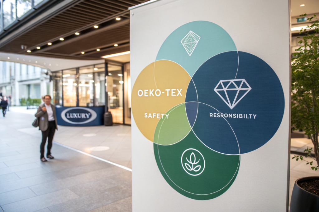 OEKO-TEX certification aligns with luxury sustainability expectations by demonstrating a foundational commitment to responsible chemical management—a core pillar of any true sustainability framework. It shows the brand is managing its environmental and health impact at the molecular level, which resonates deeply with consumers who view sustainability as holistic, not just about organic materials.