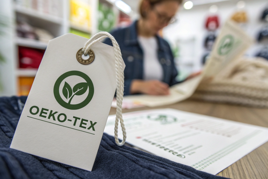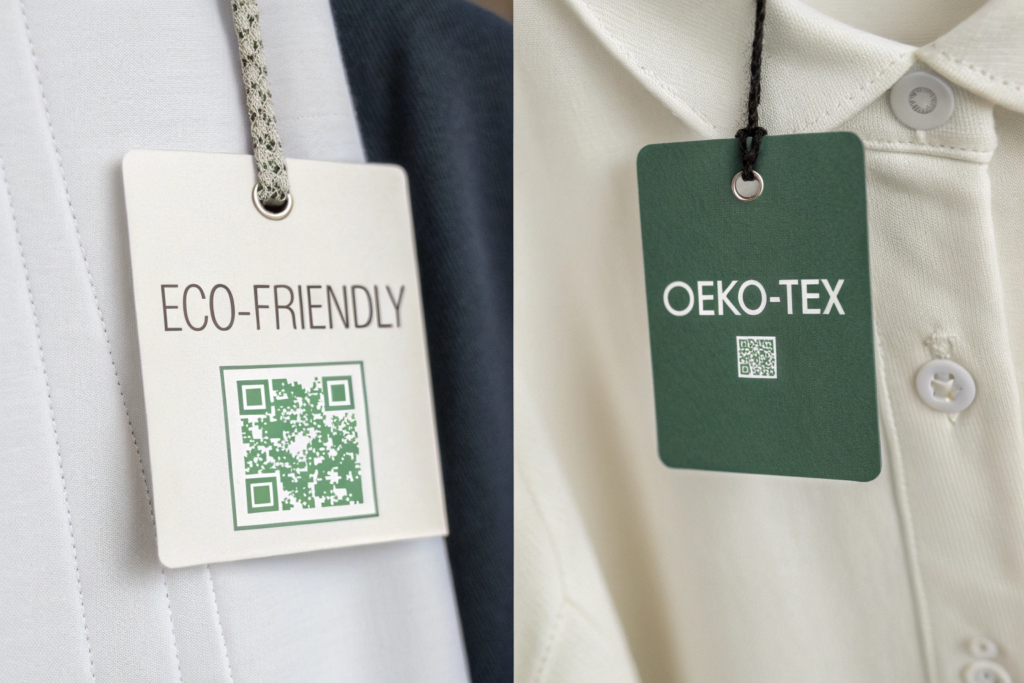 • On-Product: Use the official OEKO-TEX label on hangtags and care labels. For premium positioning, consider a woven label.