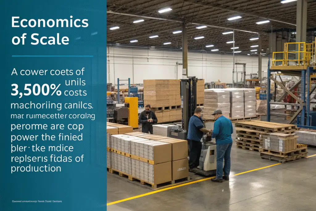 Manufacturing processes become significantly more efficient at higher volumes. Workers develop muscle memory, quality becomes more consistent, and machines require fewer changeovers.