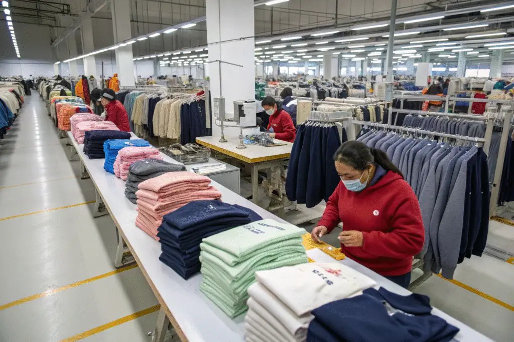 We structure our lines into modular zones. One zone may stitch all knit tops, another handles woven bottoms. This allows overlap without re-training for each SKU. Every line has a lead who tracks progress with barcode checkpoints and weekly reports.