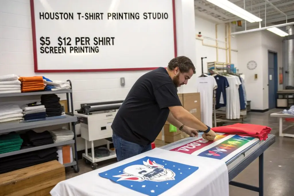 In Houston, the average cost for screen printing custom T-shirts ranges between $5 and $12 per shirt. Prices vary based on factors like shirt quality, number of colors, design complexity, and order size. Larger orders significantly reduce per-unit costs, making bulk printing highly cost-effective.