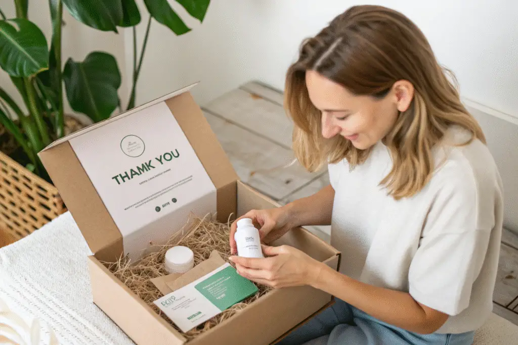 Encourage customers to share the moment on social media using tags or printed prompts. According to Dotcom Distribution, 40% of shoppers are more likely to share aesthetically pleasing packaging online.