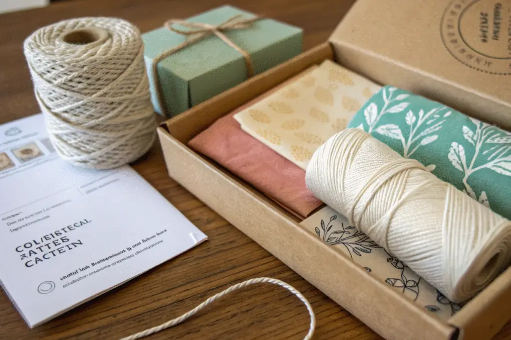 Internal components like hang tags, tissue, and tape matter. Swap plastic fasteners for twine or paper string. Replace coated hang tags with seed paper—yes, the kind customers can plant.