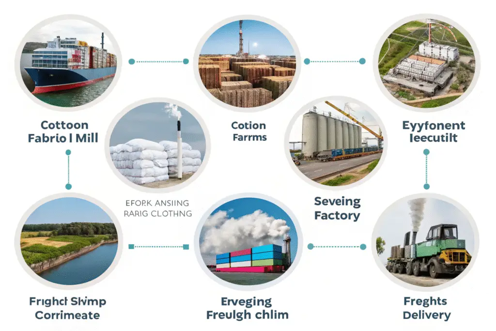 The carbon footprint of imported apparel stems from multiple stages that extend beyond just shipping. From cotton fields to retail warehouses, every process adds to the garment’s total emissions.