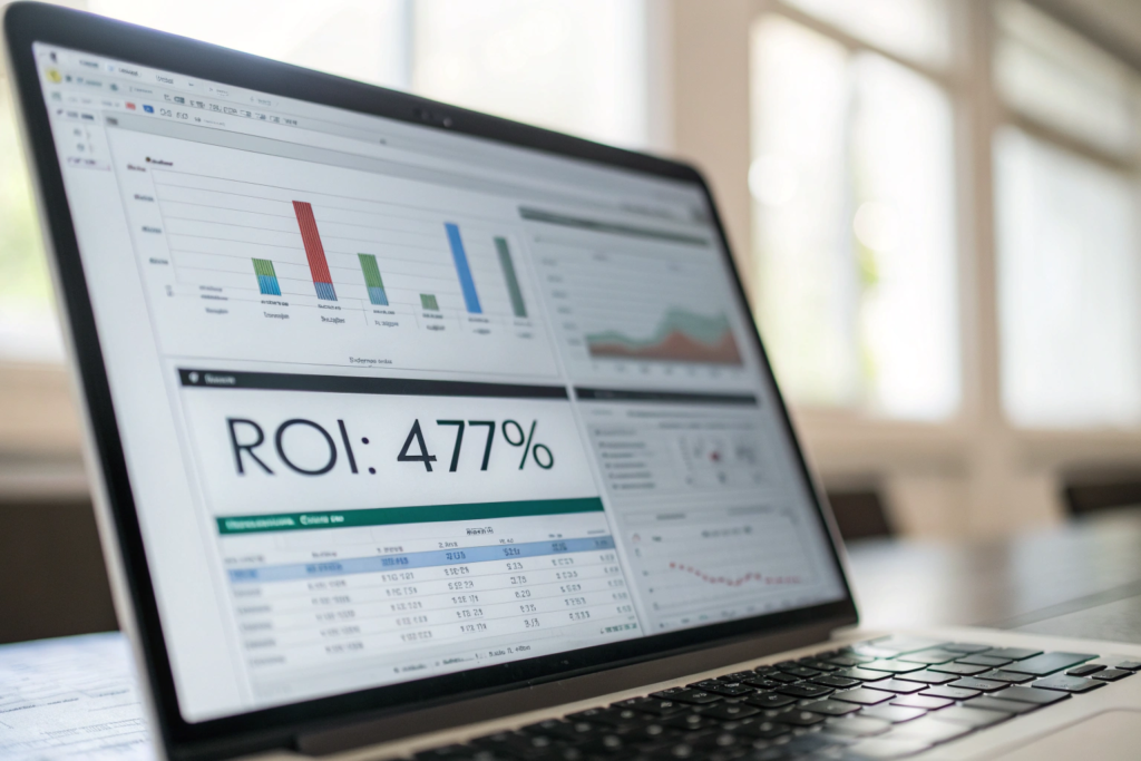 ROI = ($43,250 - $7,500) / $7,500 ≈ 4.77 or 477%.