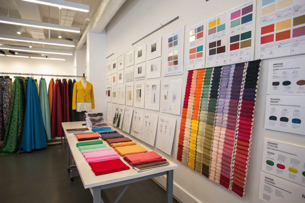 Many mills impose minimum order quantities (100-500 yards typically) for custom fabrics, creating inventory risk for emerging brands. We help clients navigate this by identifying quality stock fabrics with lower minimums or coordinating fabric pooling among complementary brands. A sustainable startup accessed our fabric collective program, sharing a GOTS-certified organic cotton order with two other brands to meet mill minimums while each receiving their needed yardage—an approach that made premium sustainable materials accessible at their early stage.