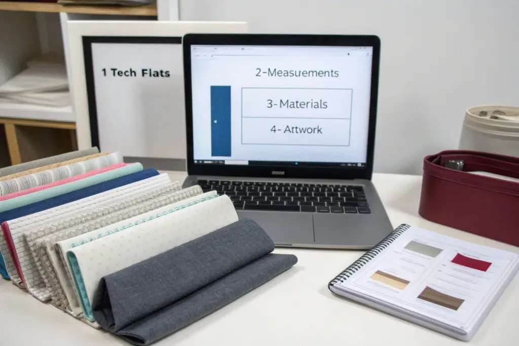 Organize your tech pack in a logical, numbered sequence with a clear table of contents. Deliver as a single PDF with embedded fonts and high-resolution images, accompanied by separate source files for artwork and a physical fabric swatch package. This organization shows professionalism and helps factory teams navigate your requirements efficiently.