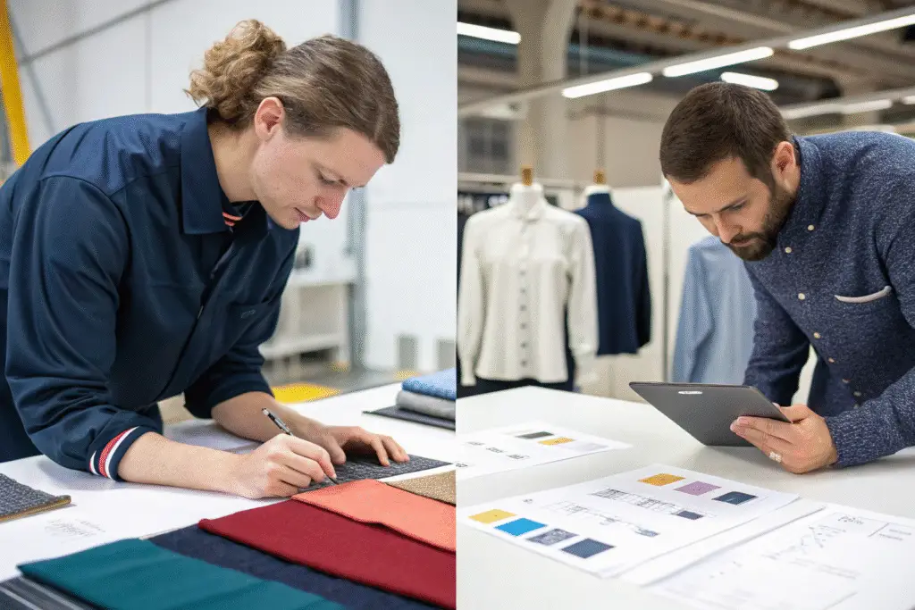 This phase is all about finalizing your design and sourcing materials. It begins with the tech pack creation. A detailed tech pack is crucial. It includes specifications, measurements, and fabric choices. We then move to fabric and trim sourcing. We work with trusted mills to secure the right materials. Sampling comes next. We create a prototype sample for your approval. This sample ensures the design, fit, and quality meet your vision. We make revisions until you are completely satisfied. Finally, we conduct lab tests for fabric quality and colorfastness. This step ensures the materials meet international standards.