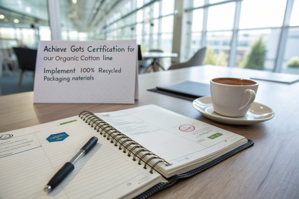 Establishing precise sustainability objectives at your kick-off meeting creates immediate alignment between your brand and manufacturer. Without clear goals, sustainability remains an abstract concept rather than an actionable plan. Therefore, begin by explicitly stating what you want to achieve, whether it involves using certified materials, reducing water consumption, or ensuring fair labor practices throughout production.