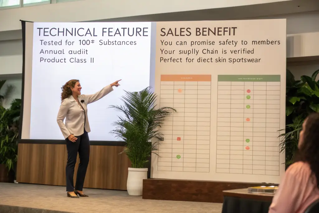 Last quarter, a sales rep for one of our partner brands lost a major deal with a country club. The club's committee asked detailed questions about product safety and sustainability, and the rep could only talk about price and style. The competitor, whose rep confidently explained their OEKO-TEX certification, won the contract at a 20% higher price point. This isn't about fabric—it's about sales enablement.
