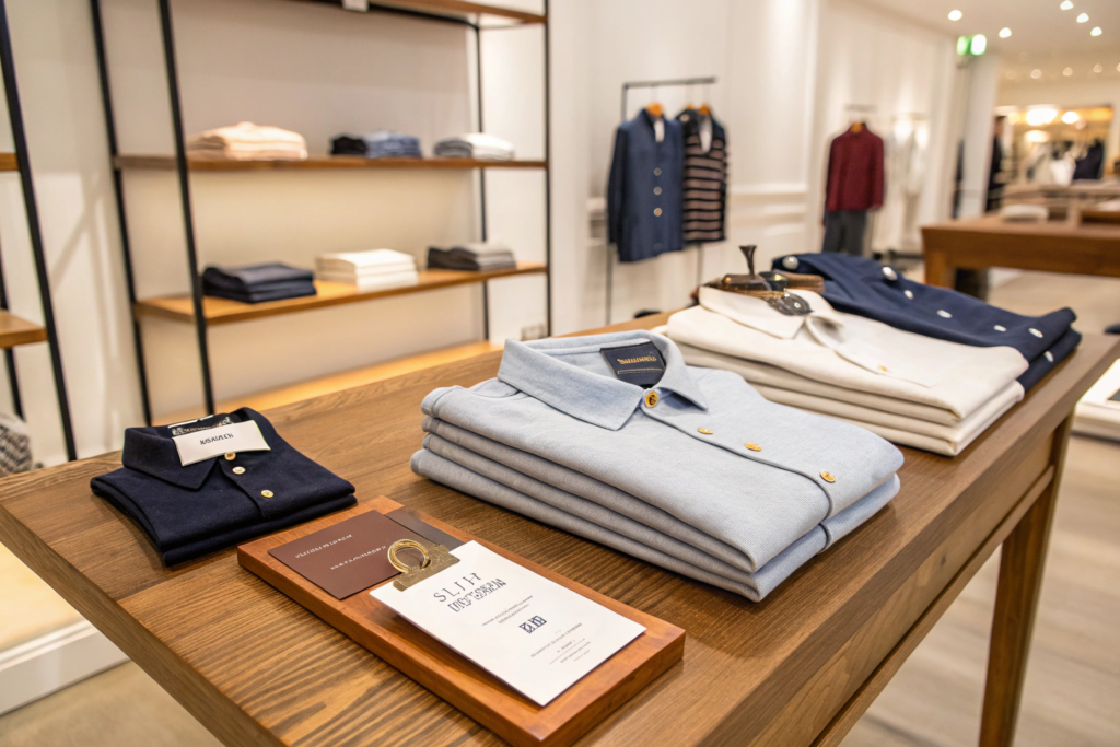 For retail brands, consider tissue paper, stickers, and branded bags. The details matter. A garment wrapped in tissue with a sticker seal feels more special than a garment folded directly into a poly bag.