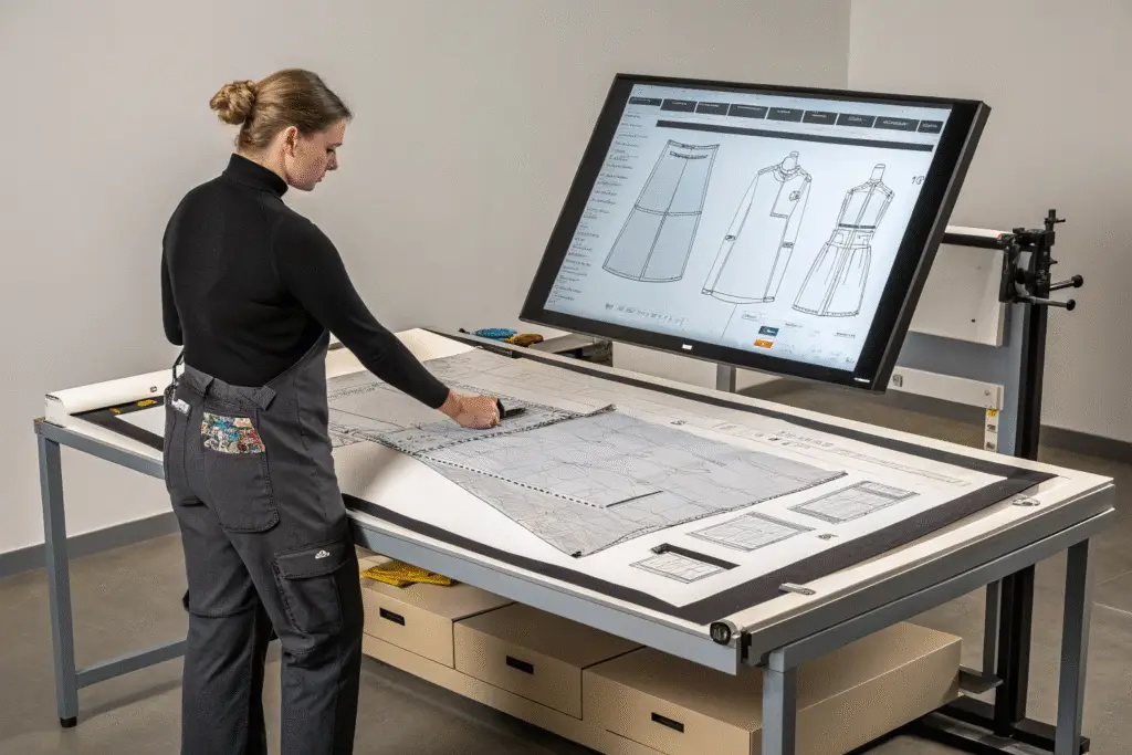 Digital grading prevents the paper stretch or shrinking errors common in manual methods. It also lets us share DXF files with brands for easy edits and approvals.