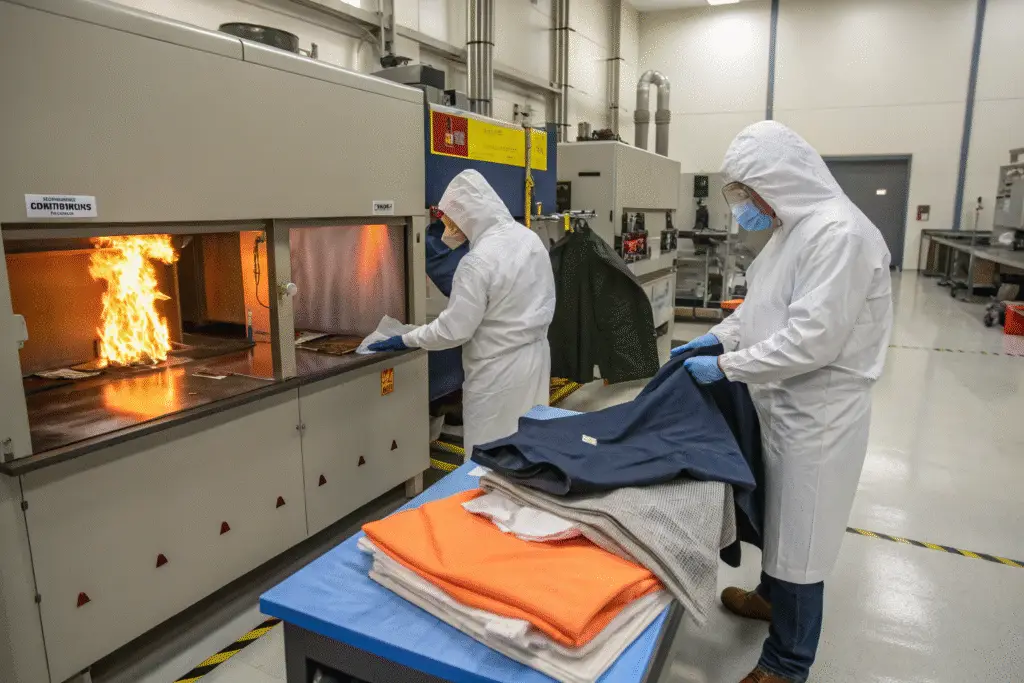 Flammability testing must be conducted in accredited labs under the ASTM D6413 or CPSC-prescribed method. This includes both fabric-only and full-garment testing if required.