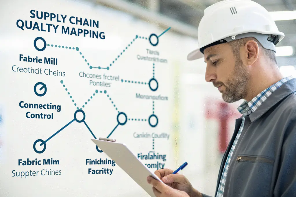 Quality responsibility extends beyond your immediate manufacturer to include fabric mills, trim suppliers, and subcontractors. A weakness at any point in your supply chain can compromise your final product quality.
