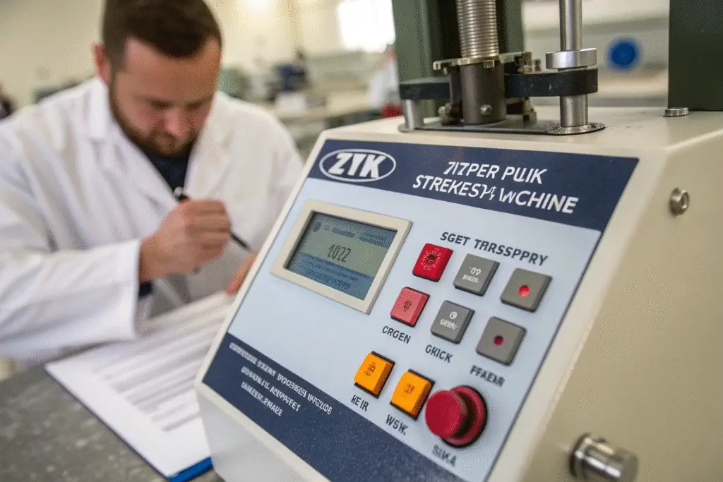 200 pulls. Boston jackets sample. YKK passed 250. Cheap stuck 80. Check pull strength. Force check.