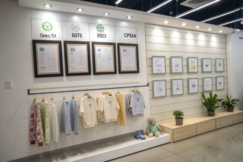 When sourcing baby bodysuits, safety should always come first. Reputable manufacturers will hold valid certifications that demonstrate product compliance with U.S. or EU standards. If you’re distributing in North America, certifications like OEKO-TEX, GOTS, CPSIA, and BSCI are critical. Factories that invest in proper testing and compliance tend to take quality and reliability more seriously overall.
