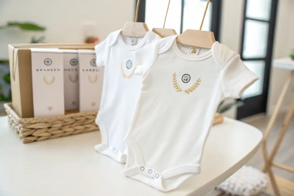 Even simple baby bodysuits can look premium with the right brand elements. You can add heat-transfer logos, woven neck labels, or printed care instructions. Embroidered chest logos or baby-themed prints help you stand out.