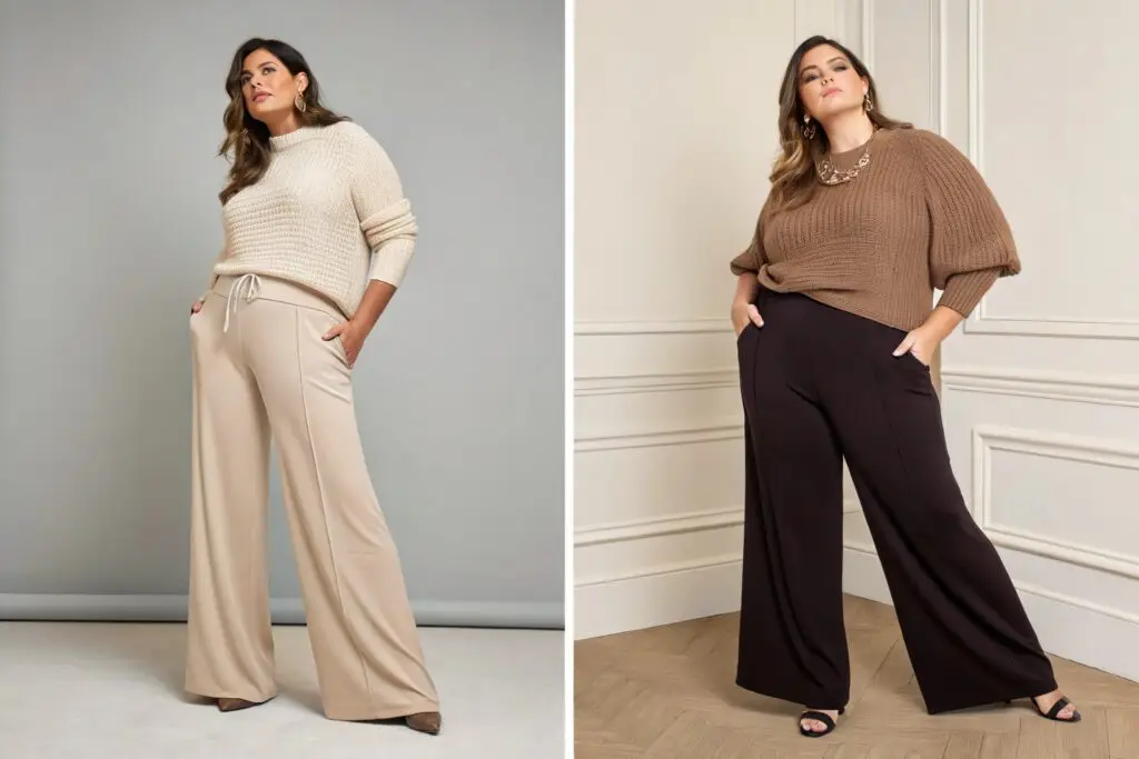 | Wide-Leg Trousers | Adjustable waistband | Fits curvy and straight waists |