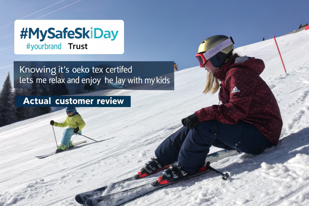 • Instagram Reels/TikTok: Create a 15-30 second video. Quick cuts showing: (1) A parent packing their kid's ski gear, (2) A zoom-in on the OEKO-TEX Class I label, (3) A child happily playing in the snow. Text overlay: "Peace of Mind, Packed In. #OEKOTEX #SafeSkiing"