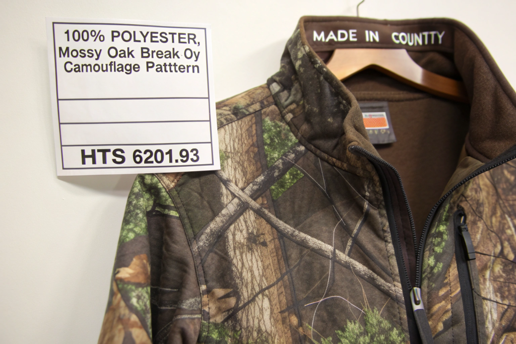 - Accurate HTS Codes: The Harmonized Tariff Schedule (HTS) code determines duty rates. Camo sportswear jackets (e.g., HTS 6201.93) have a different duty than non-camo jackets. Misclassification risks penalties.
