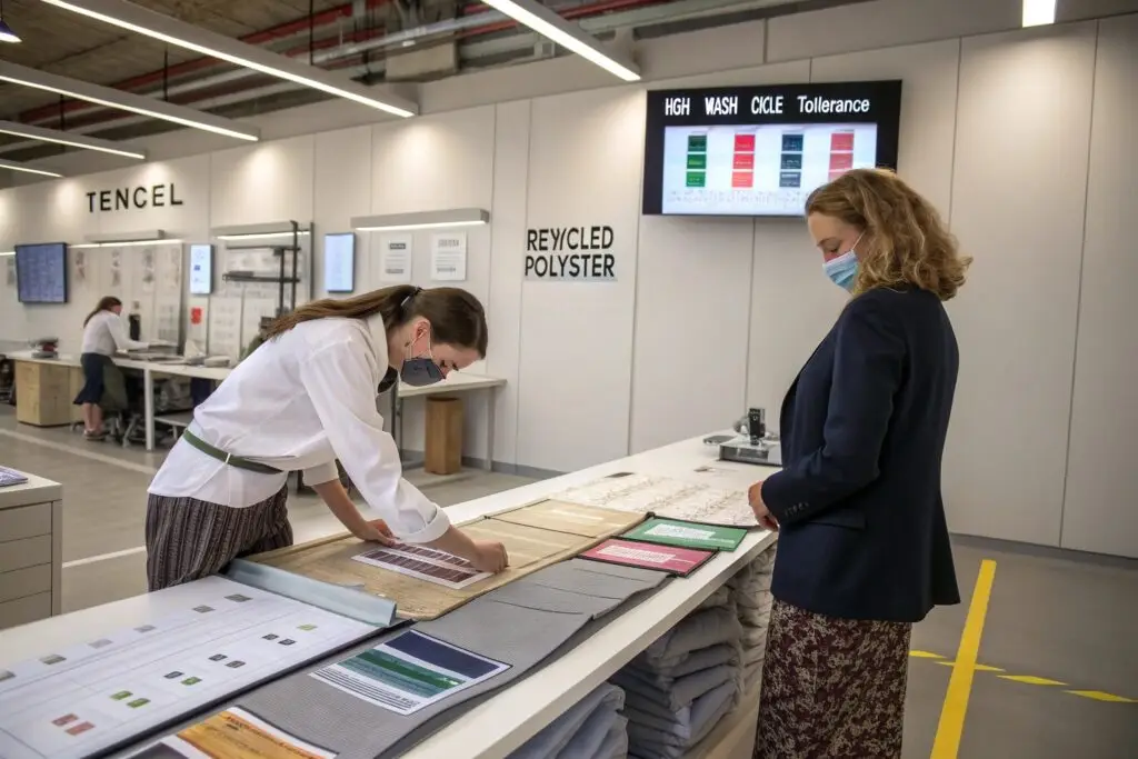 Team comparing textile durability and rental lifecycle