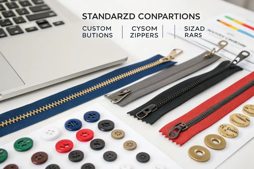 Another effective strategy is using standardized components wherever possible. Custom buttons, zippers, and labels often have high minimums that drive up costs for small runs. By selecting from a manufacturer's standard options, you can maintain quality while reducing cost and lead time. We maintain a library of approved trims specifically for our low MOQ clients.