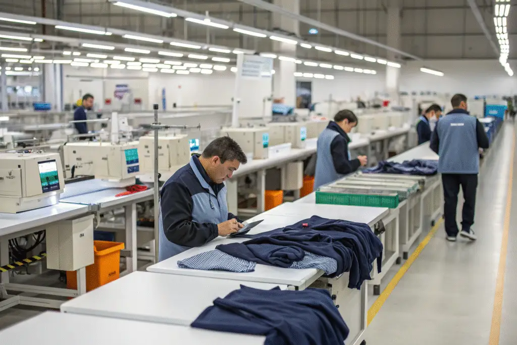 - In-process inspection during cutting and sewing