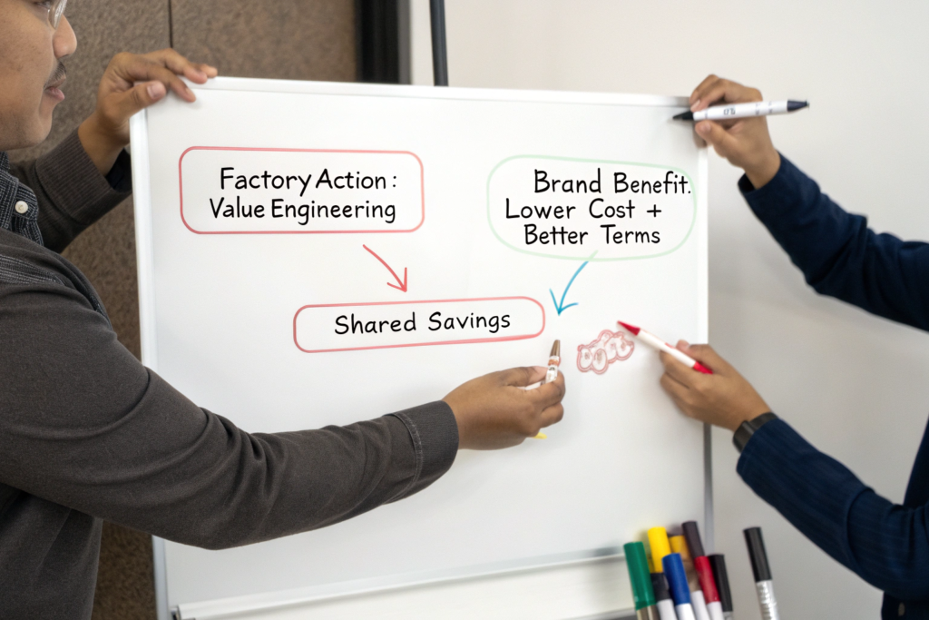 During negotiations, don't just say you'll be easy to work with. Frame it: "We provide complete tech packs with certified print-ready artwork, guarantee 48-hour sample feedback, and adhere strictly to our agreed payment schedule. This efficiency saves your team an estimated [X] hours per development cycle. We believe this reduced operational cost should be reflected in a more collaborative pricing and term structure."