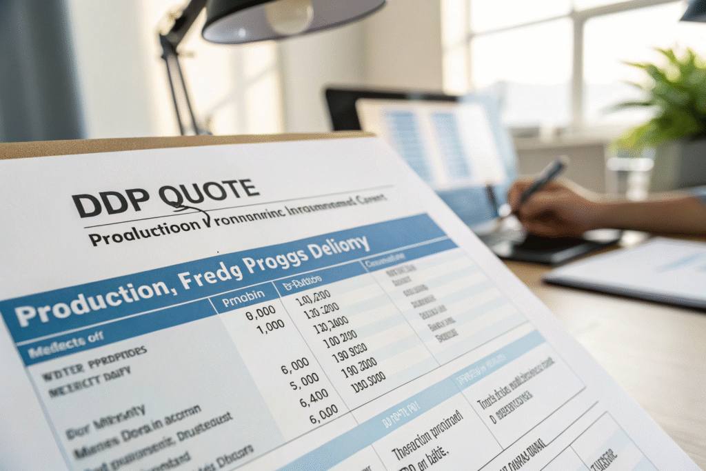 A comprehensive DDP quote should include: production costs, raw materials, quality control, documentation, international freight, insurance, customs duties, taxes, and final domestic delivery. We provide transparent cost breakdowns so clients understand exactly what they're paying for at each stage.