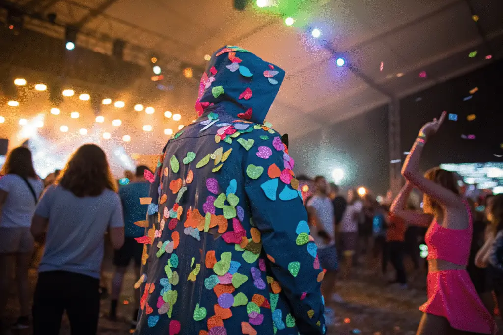Biodegradable confetti-embedded festive wear solves the problem: garments decorated with rice paper, cellulose, or cornstarch-based confetti that shine on the dance floor but leave no plastic waste behind.