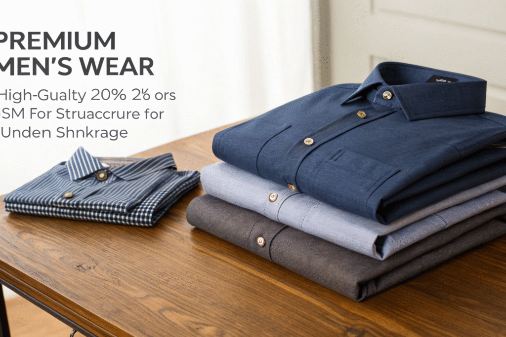 Premium men's wear starts with fabrics over 200 GSM for structure and under 5% shrinkage for fit.