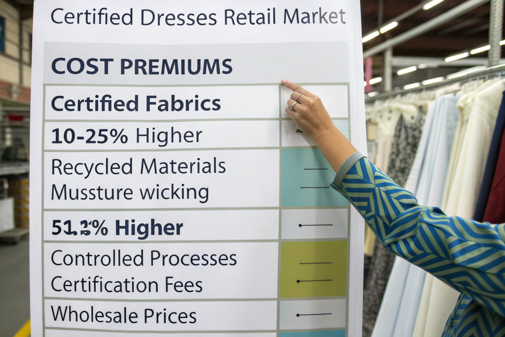 Cost premiums typically range from 10-25% for certified fabrics, depending on the complexity (e.g., a certified recycled polyester with moisture-wicking treatment costs more than a basic certified polyester). Manufacturing costs are also 5-15% higher due to controlled processes, segregated production, and certification fees. However, this should be factored into your wholesale price, as the end-market for certified dresses supports a significant premium (often 30-50% at retail).